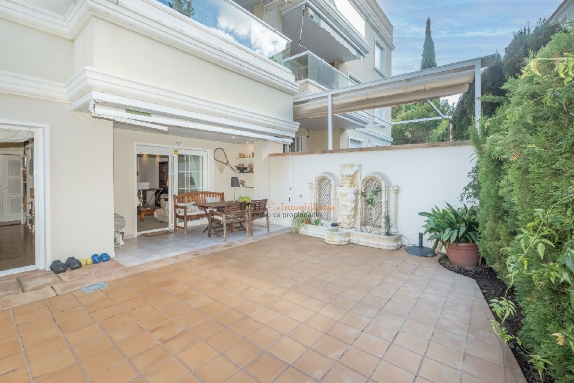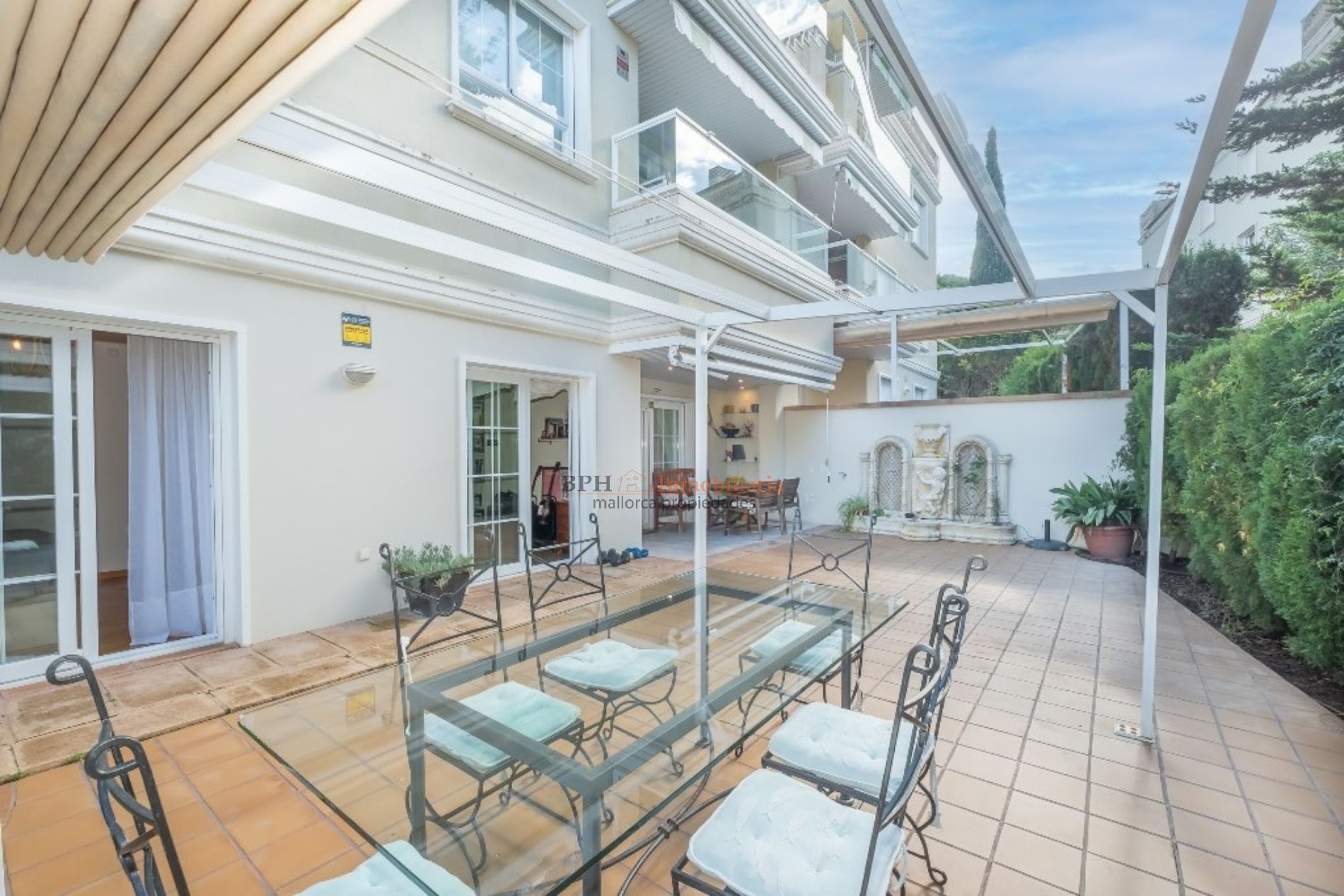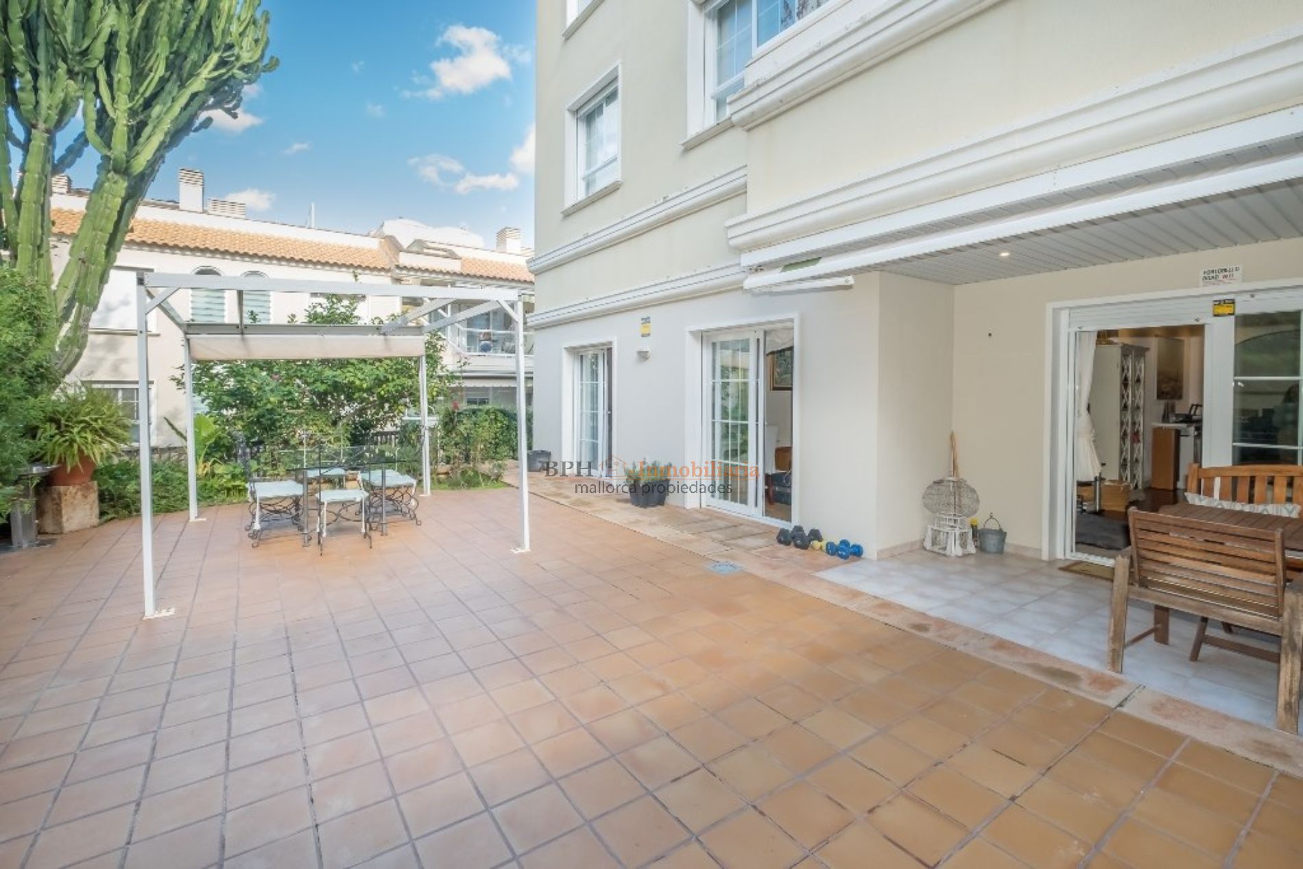 La Bonanova es un barrio con baja densidad de población, zonas verdes, pocos hoteles, algunos comercios, un colegio privado, el Queen’s College y un parque, el Parque Son Vic del cual se puede disfrutar de largos paseos por su gran terreno. Planta baja con zona exterior, terraza y jardin, situada en un complejo de zonas verdes y con varias piscinas comunitarias. La vivienda se compone de unos 114m2 de vivienda la cual se distibuye en tres dormitorios dos baños amplios y completos, cocina grande y gran salon con vistas a la terraza de 140m2 mas un jardin bien cuidado. Dos de las habitaciones tienen directamente salida al exterior lo cual las hace muy luminosas y amplias. En el mismo edificio hay una plaza de aparcamiento para un coche grande y un trastero de aproximadamente 6m2. No dude en visitarlo con nosotros y le contaremos mucho más.